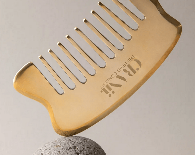Leider wird auch viel zu selten der Kopf und die Haare behandelt. Deswegen gibt es bei der Gua Sha Deluxe mit Kopfmassage eine extra Behandlung mit dem Gua Sha Copper Comb. In den Haaren bleiben oft Fremdenergien haften. Aber auch negative Energien und Emotionen werden hier gesammelt. Mit Hilfe des Copper Combs wird der gesamte Hinterkopf und die Haare davon befreit und die Kopfhaut massiert und angeregt.